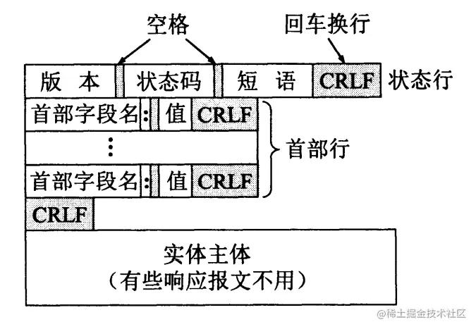 有不同的是,在响应报文的开始行不再是请求行,而是状态行