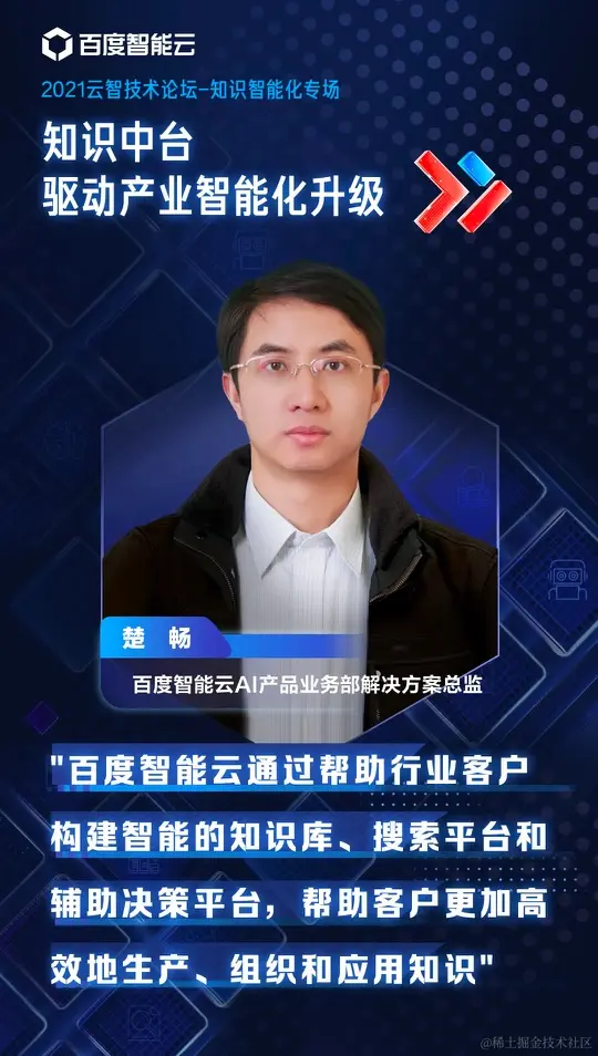 当前,全球经济形态正在由数字经济逐步发展到以人工智能为核心驱动力的智能经济新阶段,智能化成为产业转型升级的重要抓手。企业要实现智能化升级,真正需要的不仅仅是数据,更需要数据里面蕴藏的信息与知识。百度智能云以知识中台为核心,为企业打造知识智能化的智能解决方案。未来,百度智能云将携手更多合作伙伴,用人工智能技术,推进产业智能化升级!