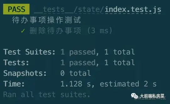 我们已经通过一个示例看到了 Jest 在测试中的工作,下面我们来测试状态逻辑中的一个函数 removeTodoItem: