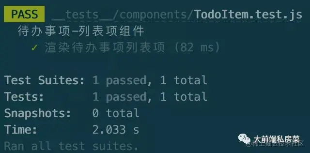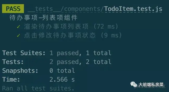接下来我们就可以编写测试了,我们来测试 TodoItem 组件是否能够在段落中渲染待办事项文本。