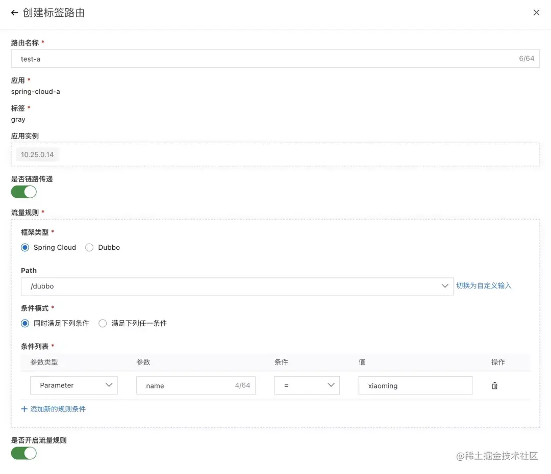 可以看到,在未打标环境忽略的标签中,我们输入了 gray,这里意味着,带着 gray 环境标的消息,只能由 spring-cloud-a-gray 消费,不能由 spring-cloud-a 来消费。