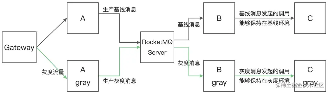 简介:本文将以上次介绍过的《如何用 20 分钟就能获得同款企业级全链路灰度能力?》中的场景为基础,来进一步介绍消息场景的全链路灰度。