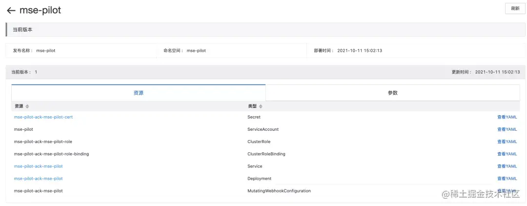 创建成功后,会自动跳转到目标集群的 Helm 页面,检查安装结果。如果出现以下页面,展示相关资源,则说明安装成功。
