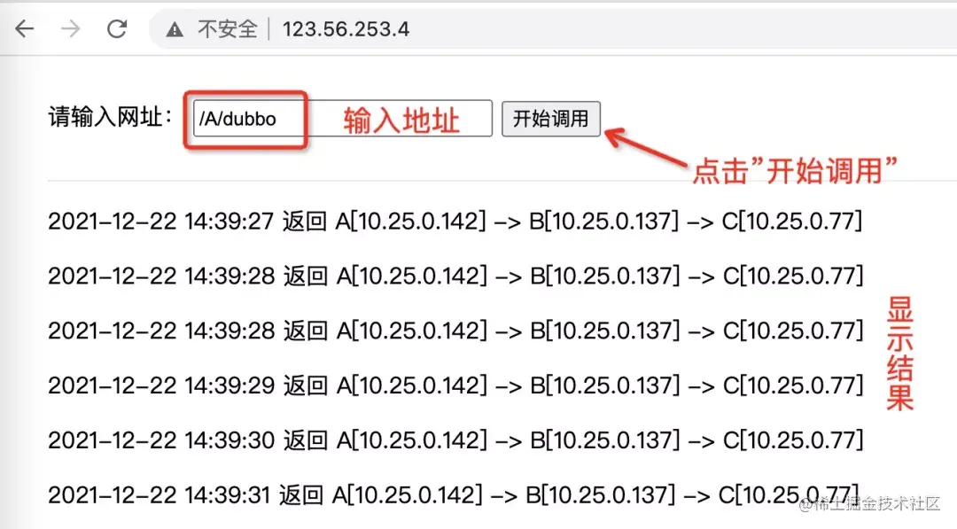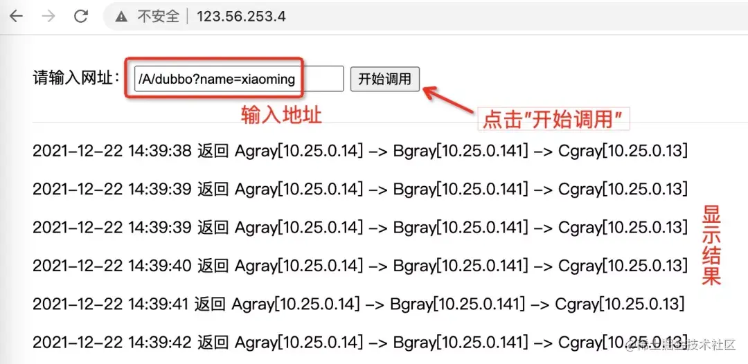 ➜ ~ curl http://123.56.253.4/A/dubbo