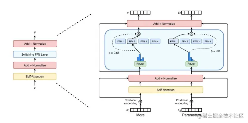训练一个万亿/10万亿参数模型,算力需求非常大。为了降低算力需求,EPL中实现了MoE(Mixture-of-Experts)结构,MoE的主要特点是稀疏激活,使用Gating(Router)来为输入选择Top-k的expert进行计算(k常用取值1、2),从而大大减少算力需求。