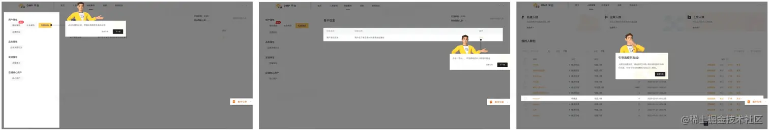 这里的“剧本”怎么理解?就是带入一个实际场景,模拟一个期望达成的目标,带领用户为此目标而进行一系列的操作引。,用户可感受整体流程以及其中的关联与时序关系。也可以理解为,这是一个预先安排好的小节目,一步一步展示给用户,可能需要交互也可能不需要。