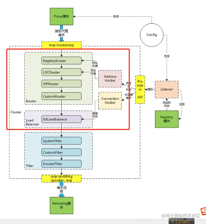 service注册自己到registry注册中心,包括service-name,还有相应的ip,port,然后client去监听注册中心,然后拿到service的地址,调用的时候会通过生成一个代理,去invoke调用结果返回