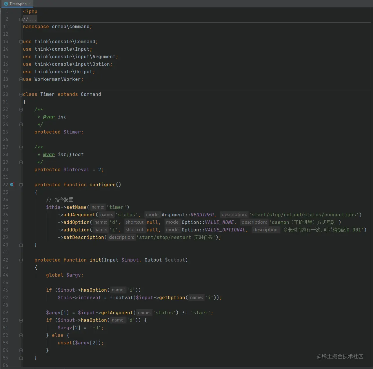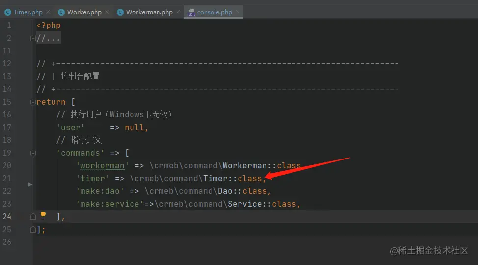 二、在config/console.php中定义指令 'timer' => \crmeb\command\Timer::class