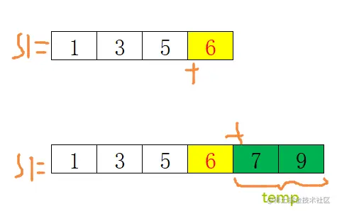 由于是对数组的引用,所以它会取s1[3]和s1[4],故值为6、9,我们追加后,最后的结果是图示如下: