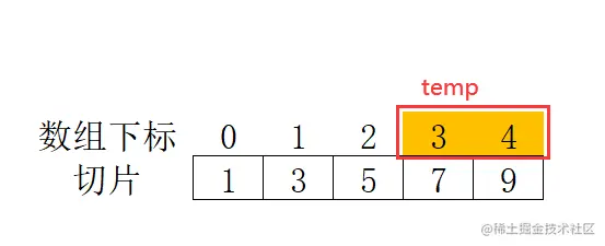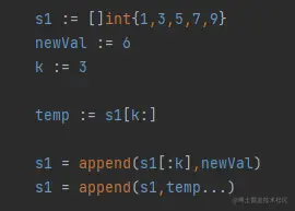 temp := s1[k:]我们将数组以k切割出来,k为3,即将7,9抓出来,存入到变量temp中,