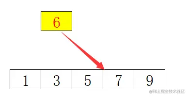 我们想要插入一个数据6,将其放置到5和7之间。