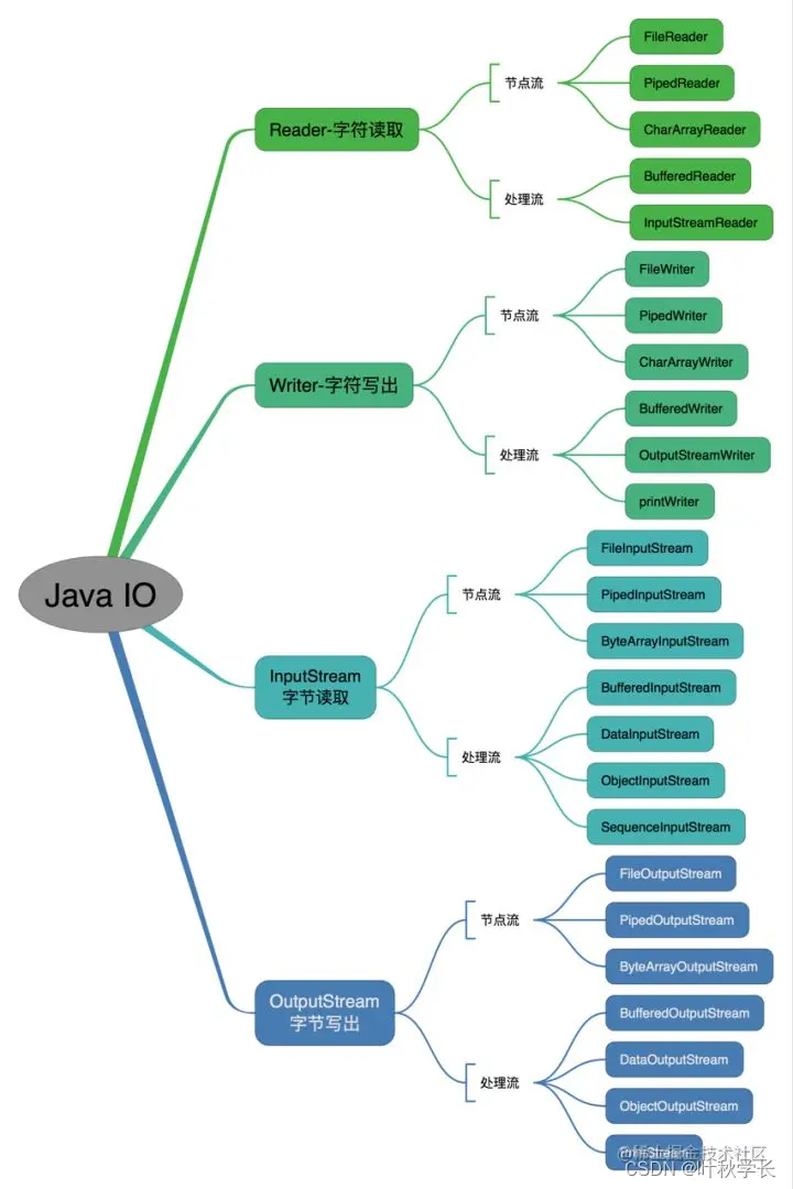 OutputStream/Writer: 所有输出流的基类,前者是字节输出流,后者是字符输出流。