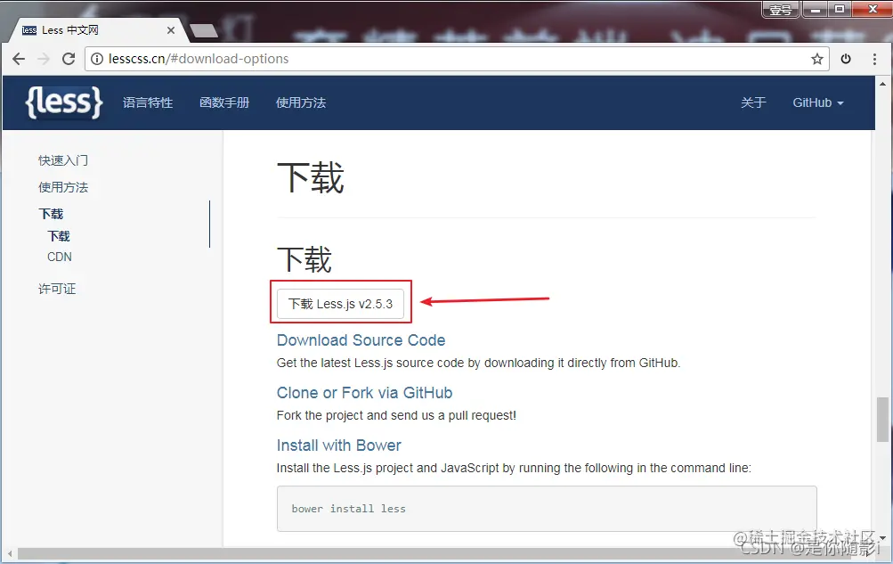 注意:一般使用方法一,方法二会多出编译的时间,因为 less 需要编译,就需要引入 less.js ,多了一个 HTTP 请求,同时当浏览器禁用了 js ,你的样式就不起作用了。