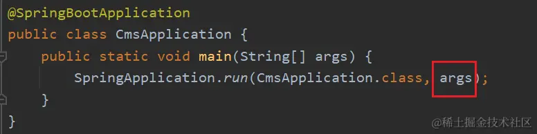 这一步实例化了 DefaultApplicationArguments 对象, 然后将 args 参数设置给该对象, 其实就是对输出的 args 参数进行了一层包装.