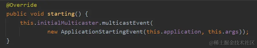 调用了 initialMulticaster 对象的multicastEvent方法, 并且传入了ApplicationStartingEvent对象作为入参.