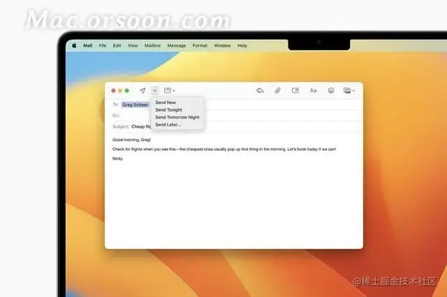 用户可使用邮件 App 安排邮件发送时间、在邮件抵达对方收件箱前撤销发送,还可添加图文链接以便更好地预览内容。邮件 App 还能检测附件或抄送收件人信息是否缺失,提醒发送者添加。用户可以设置稍后提醒以便晚些时候再处理某一邮件,在没有收到邮件回复的时候收到自动跟进提醒。