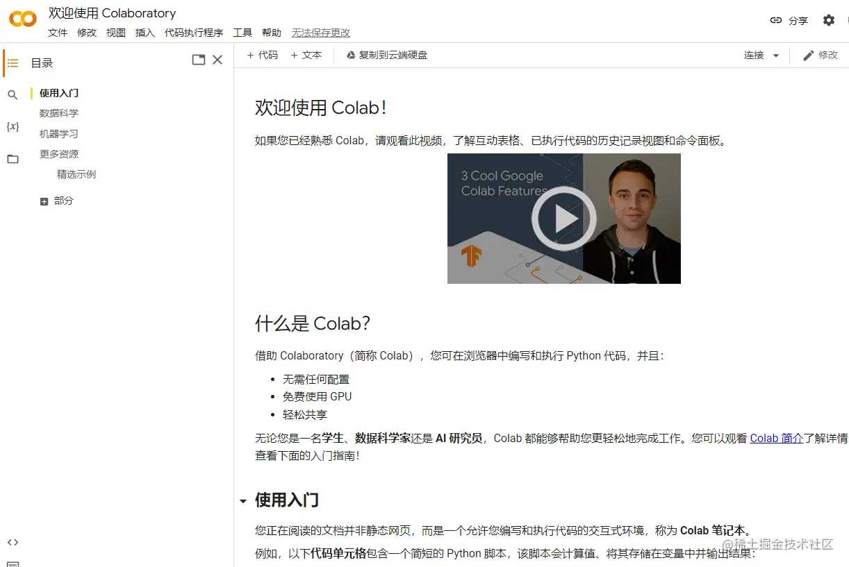 使用 Google 或 GMail 帐户,你可以访问这个 Jupyter Notebook 风格的 REPL,它提供了大量的内存和 CPU 资源。