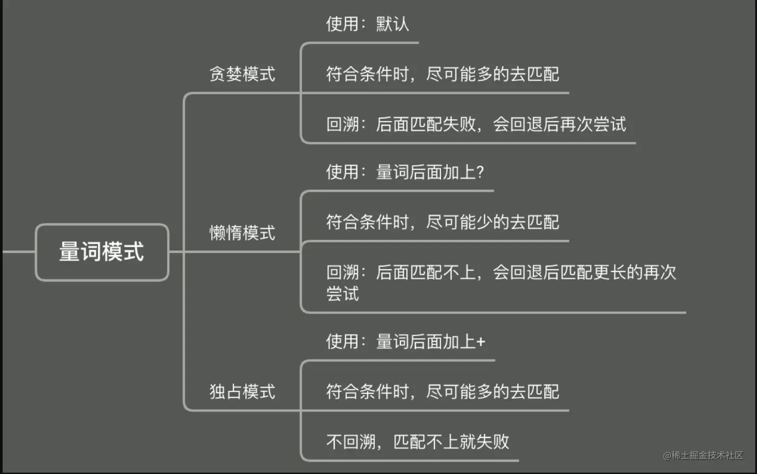 量词还涉及到模式问题,因为量词有范围,这就意味着可取多可取少,但计算机是不允许有歧义的,所以量词存在三种模式