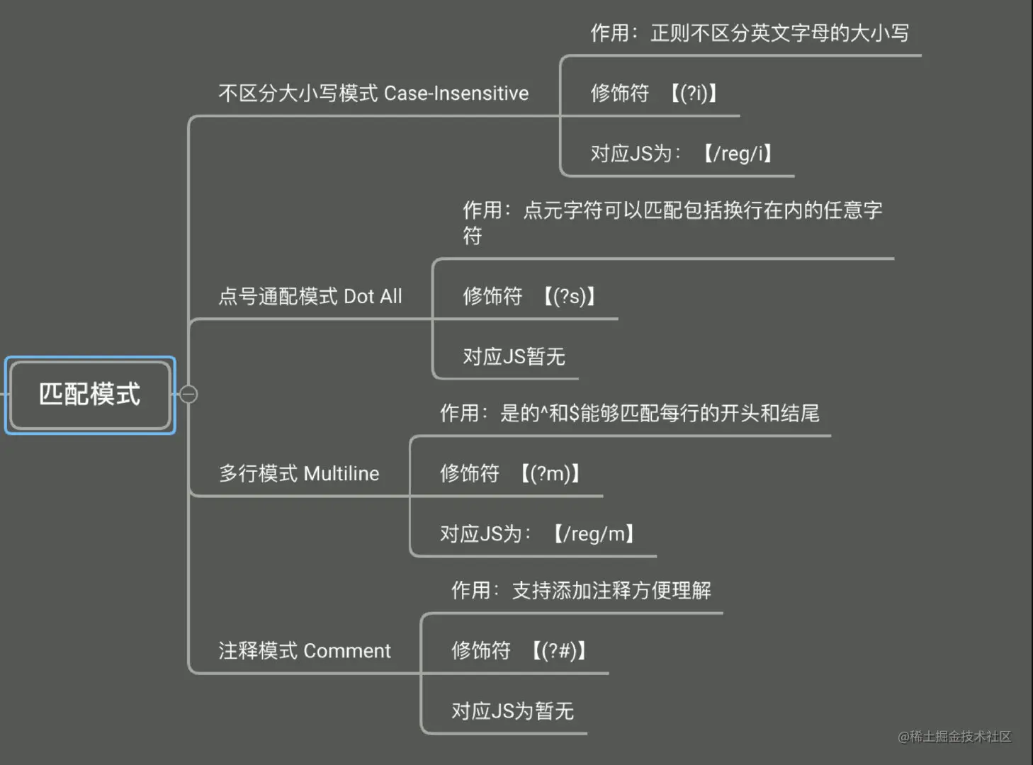 既然量词有模式,正则本身自然也有模式,针对【大小写、多行、点通配、备注】情况,存在【3+1】种模式