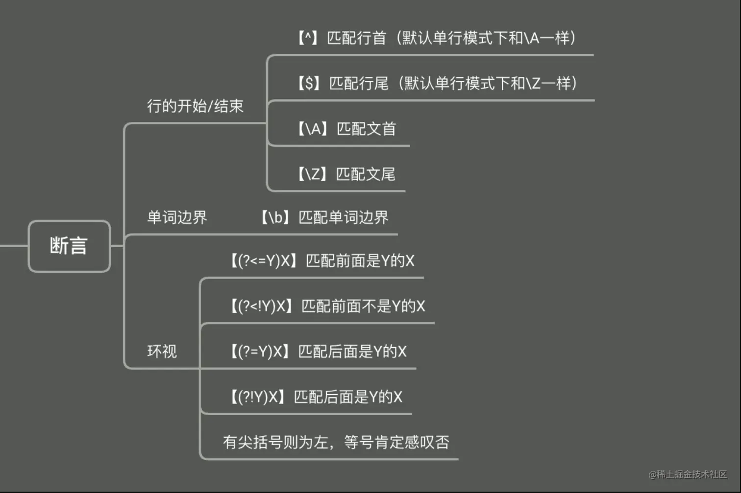 就像定位,不止需要本身的绝对信息,还需要看他的相对位置信息,这个信息在正则中叫断言,存在三种情况,【行首尾、单词边界和环视】,其中环视又存在前后是不是四种情况