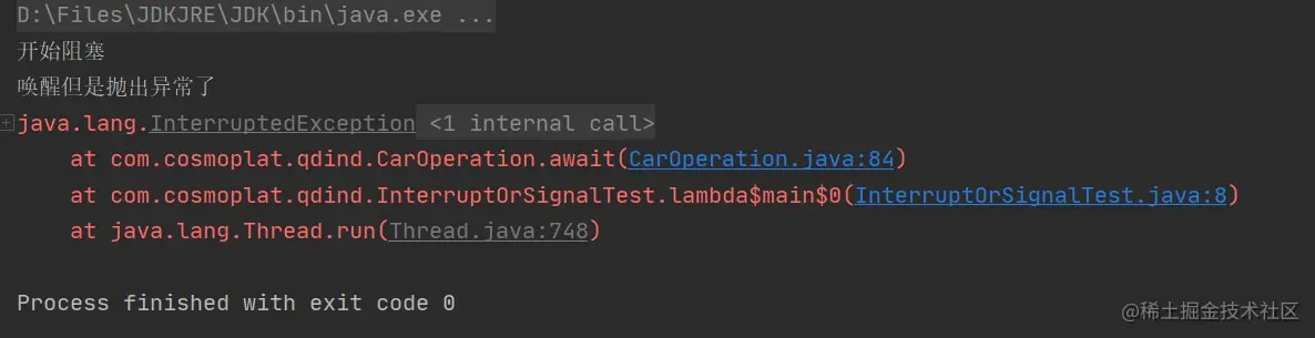 大家可以用下边的例子在transferAfterCancelledWait中打断点测试一下,相信就明了了。