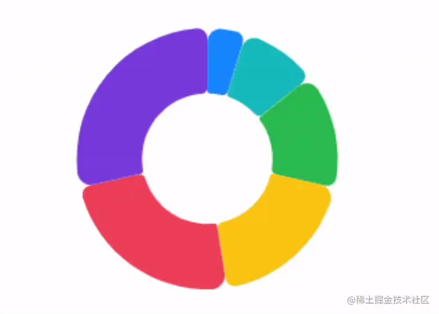 支持饼图、环形图、玫瑰图、旭日图的扇形圆角配置,并且四个角可以配置不同的圆角大小,带来更柔美的视觉感受。可别小看圆角配置,适当增加圆角,可使图表更圆滑无明显切角,增加一丝活泼元素。