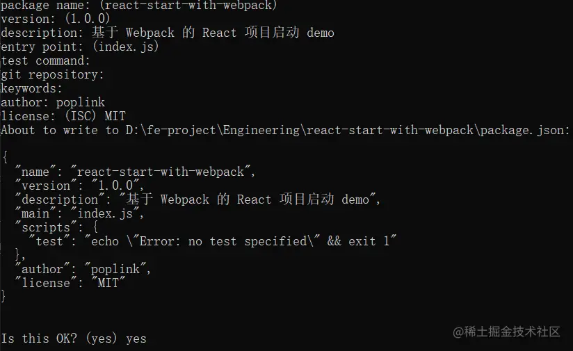 这个时候系统会创建一个 package.json 文件
