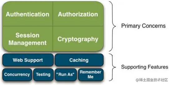 Apache Shiro 是一个拥有许多功能的综合性的程序安全框架。下面的图表展示了 Shiro 的重点: