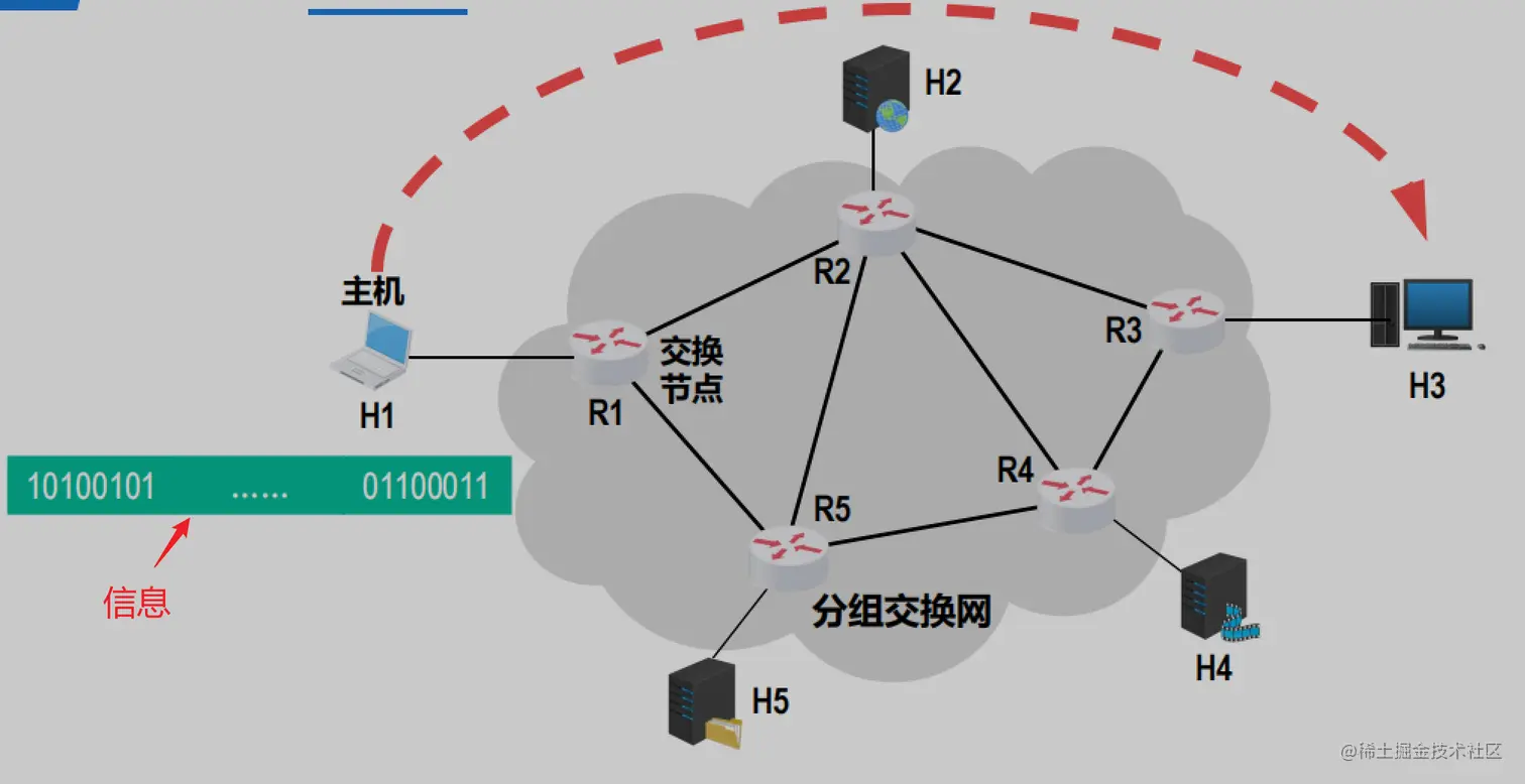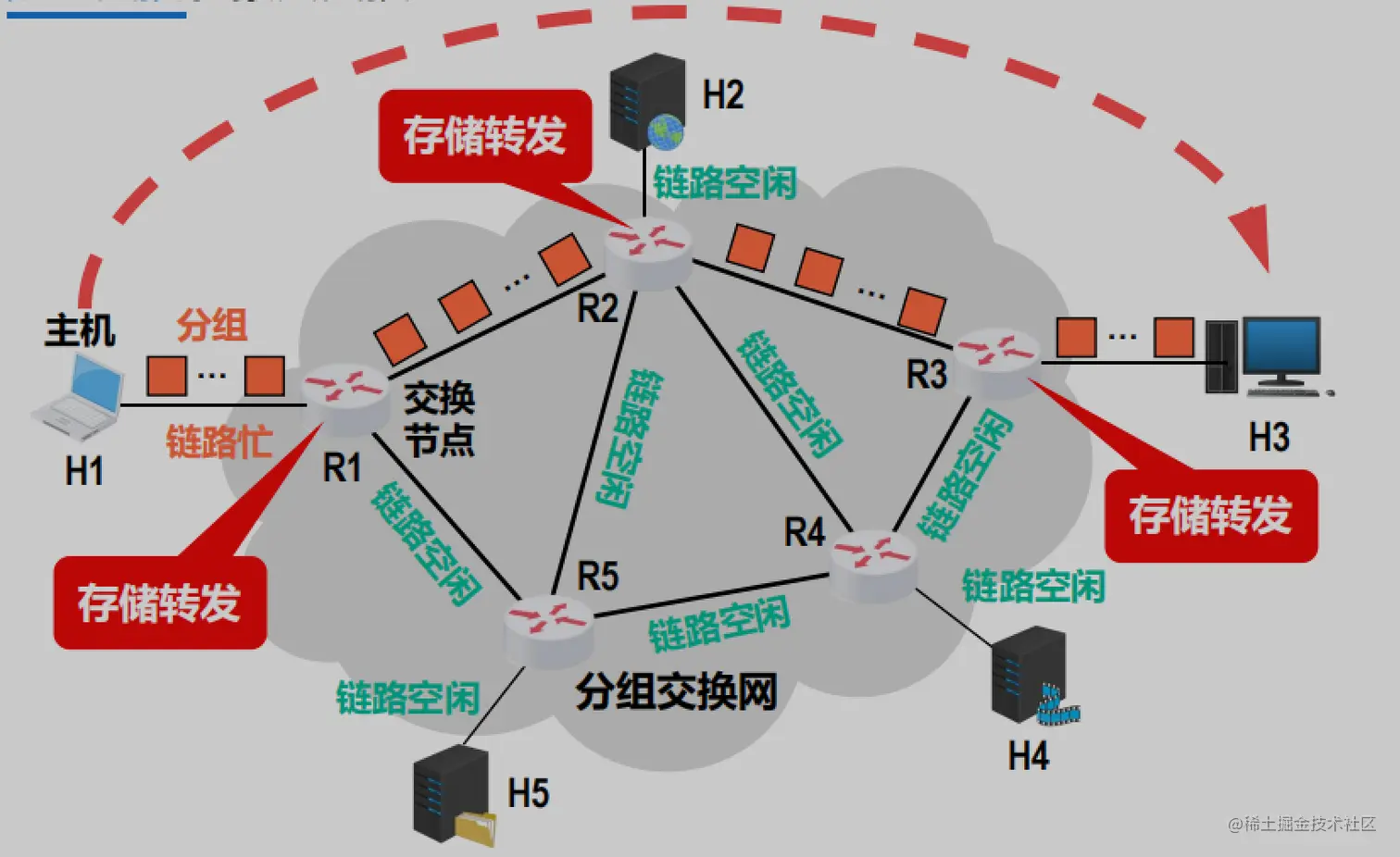 H3拿到分组的消息后,就能根据头部进行组装还原报文信息,而在这个过程中H2起到的作用就是缓存分组,然后根据头部信息转发给H3