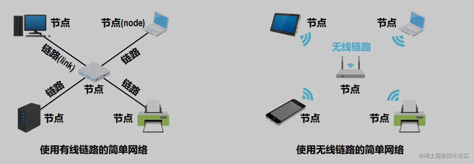 网络就是几部计算机主机或者是网络打印机之类的接口设备,透过有线链路或者是无线网络的技术,将这些主机与设备连接起来,使得数据可以透过网络媒体(网络线以及其他网络卡等硬件)来传输的一种方式: