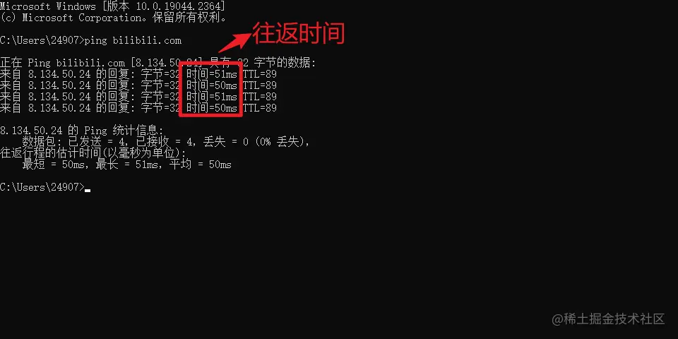 往返时间:从发送端发送数据分组开始,发送端接受到接收端返回的确认消息为止,总共耗费的时间,也就是“一次握手的时间”