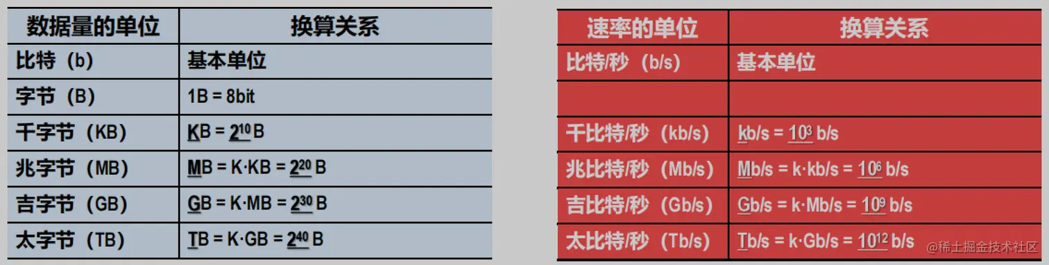 解析:这里就不得不提到数据量的单位和速率的单位了,见下表: