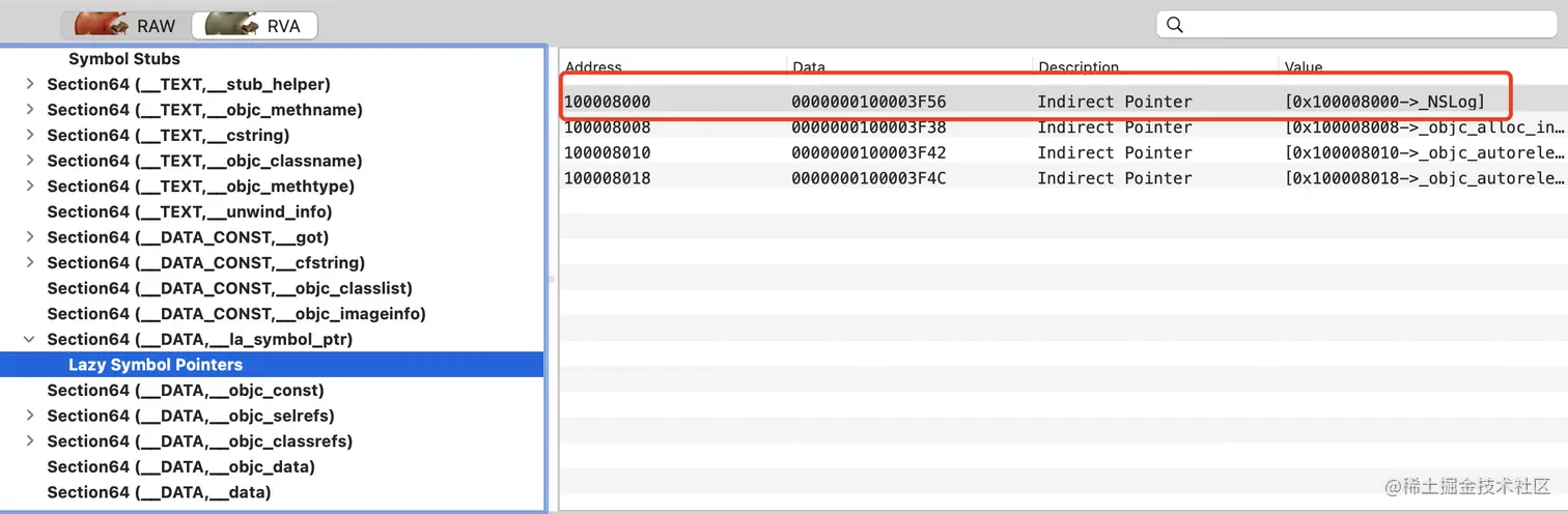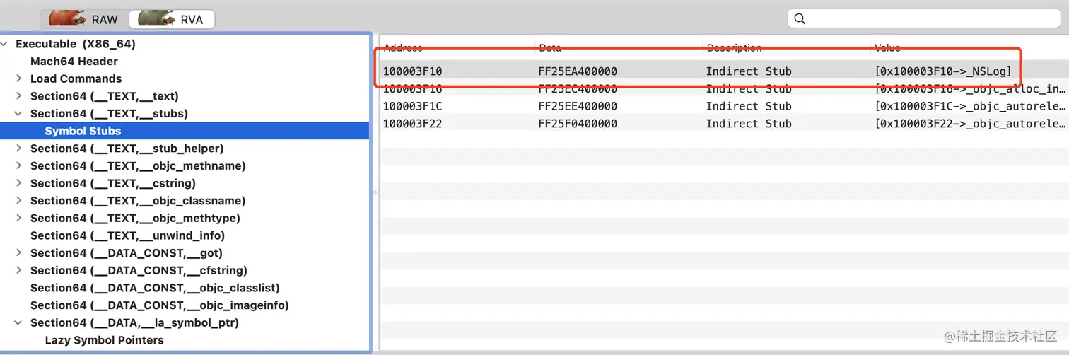 MachOView 中显示的 NSlog 对应的 stub信息