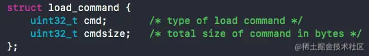 cmdsize 字段,主要用以计算出到下一个 command 的偏移量。