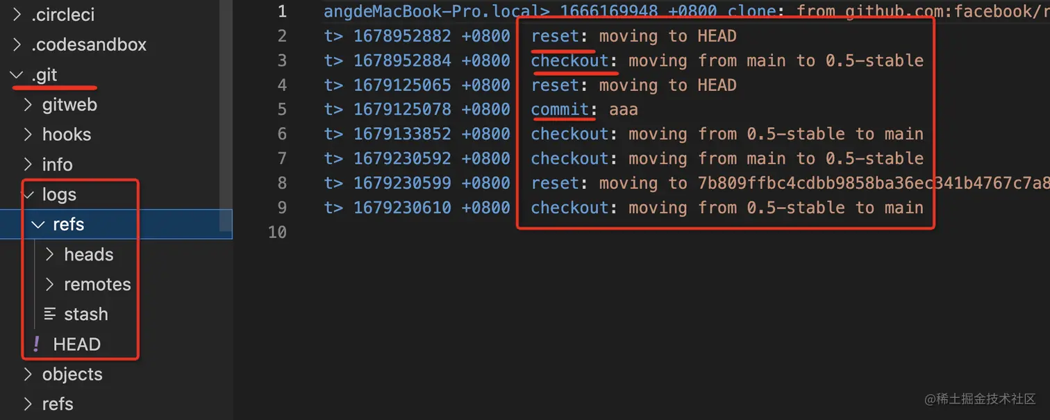这里就是 reflog 保存的地方。