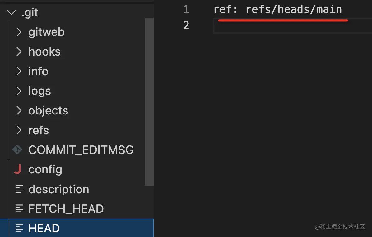在 .git 的 HEAD 文件里也可以看到 HEAD 指针的指向: