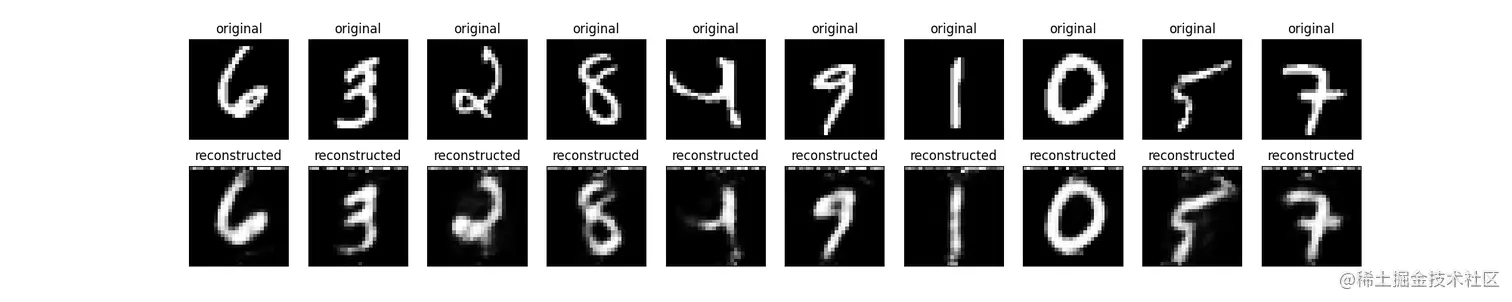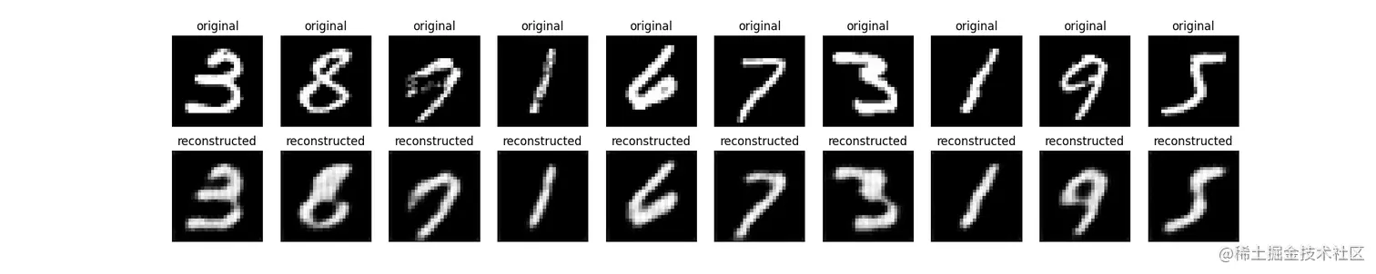上层是输入的测试集,下层是通过自编码器编码、解码之后得到的图像;