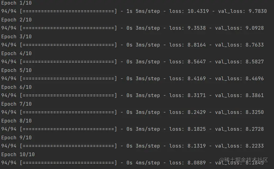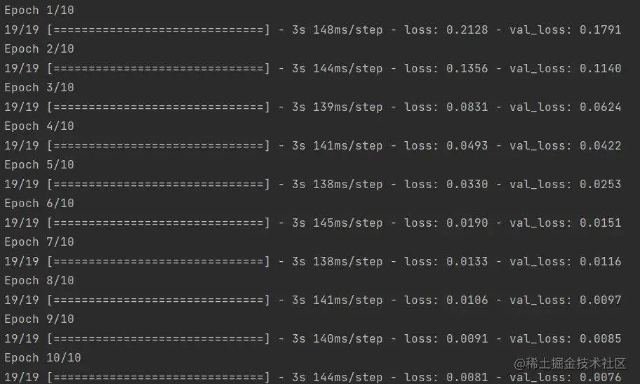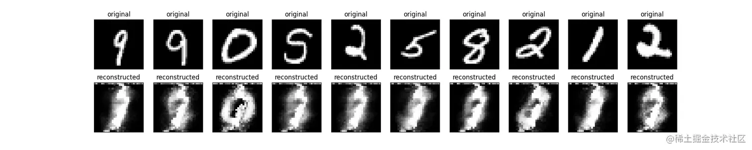 通过上面的结果我们可以看到,解码器重构的效果只能说是一般,通过模型训练时打印的信息也能看出,loss和val_loss都比较大: