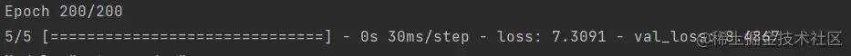 但发现测试值的损失(val_loss)会出现上升的情况,于是由尝试了迭代200次的情况,可以看到loss的下降非常有限: