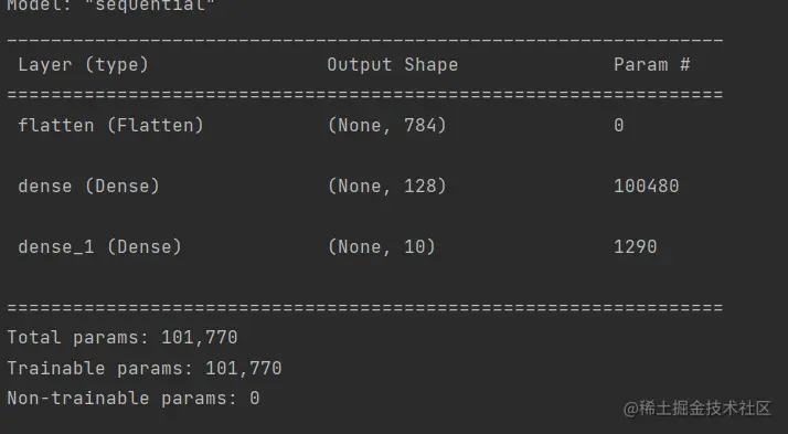 Layer (type):网络层的名称(类型),名称可以通过tf.keras.layers.Dense()中的name属性指定