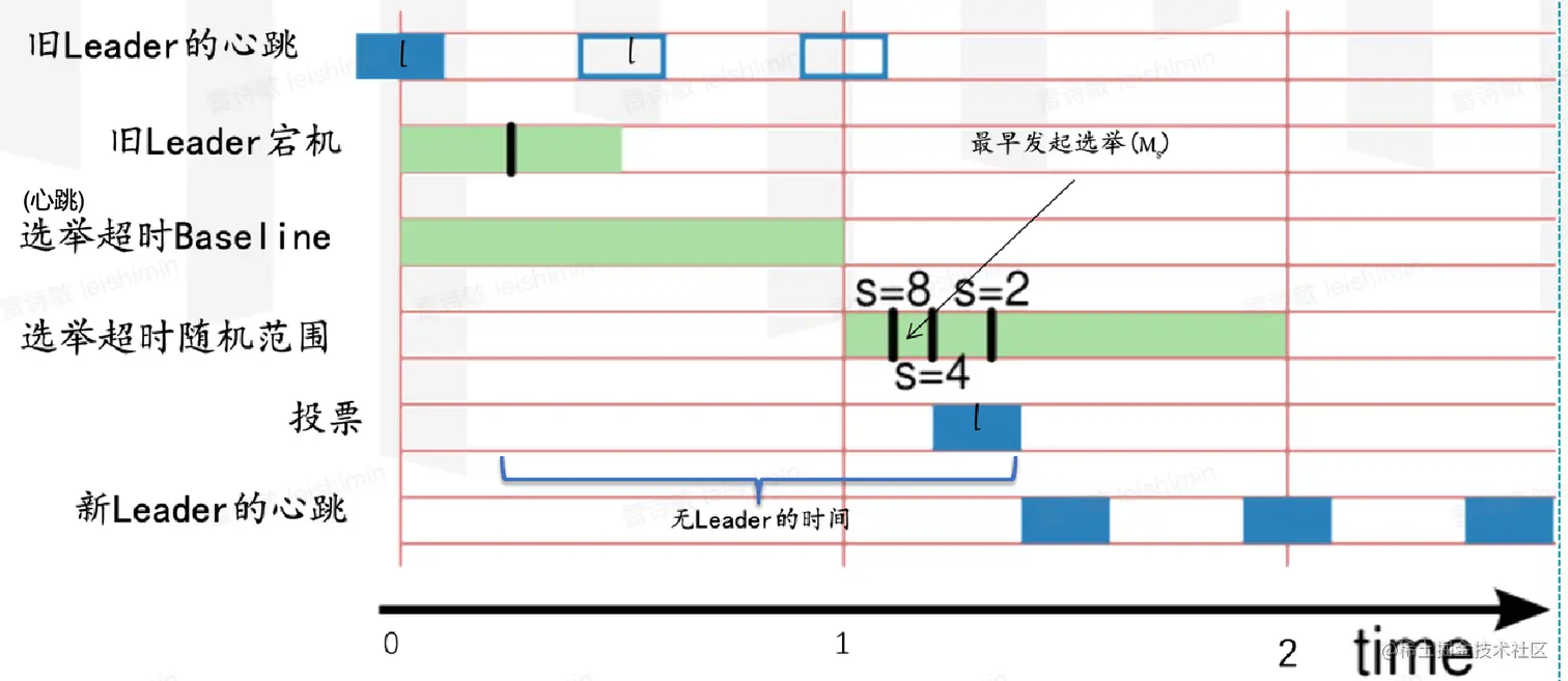 - 随机超时:通过随机的超时时间,避免下一次选举冲突。