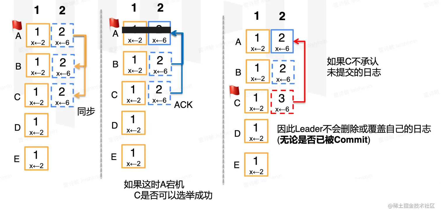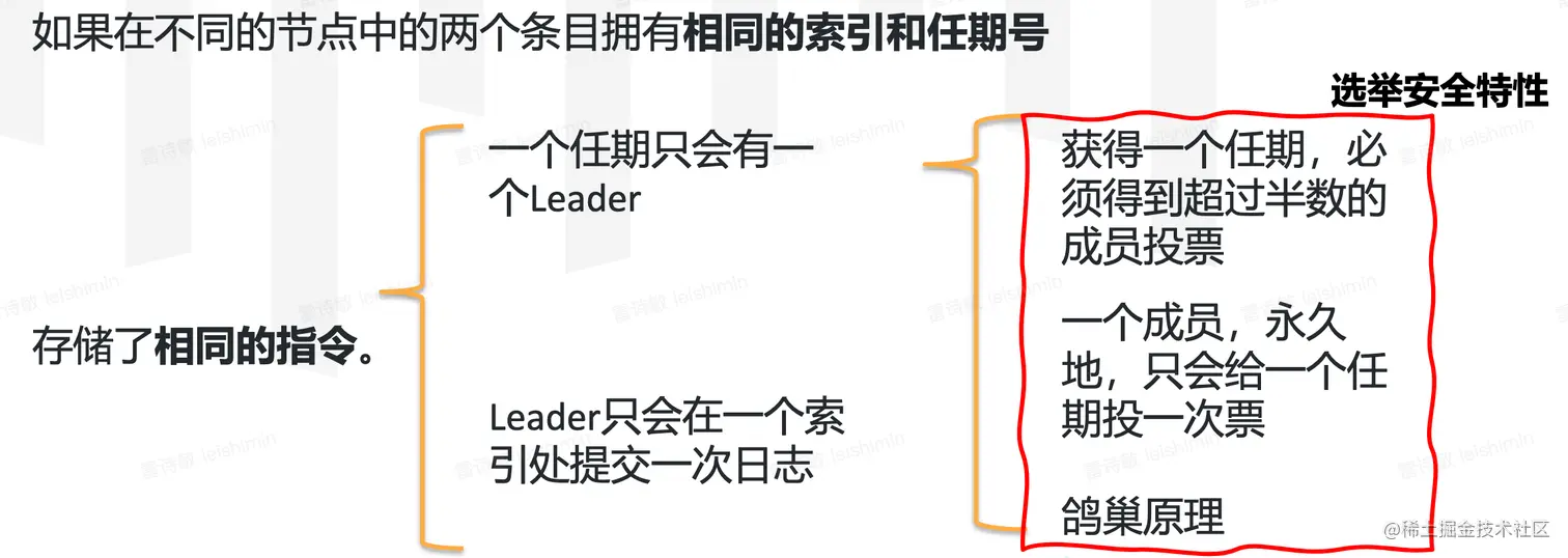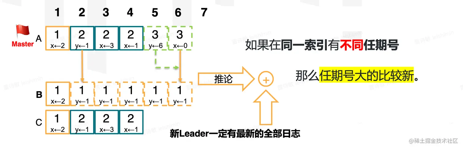 - 以上两点取交集:赢得选举的节点,必然包括最新的已提交数据。