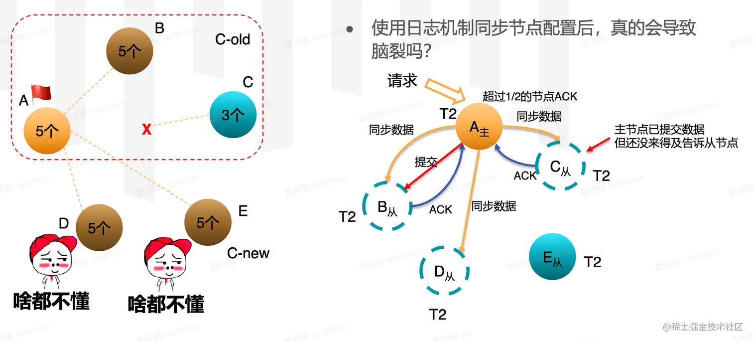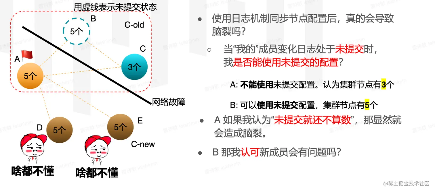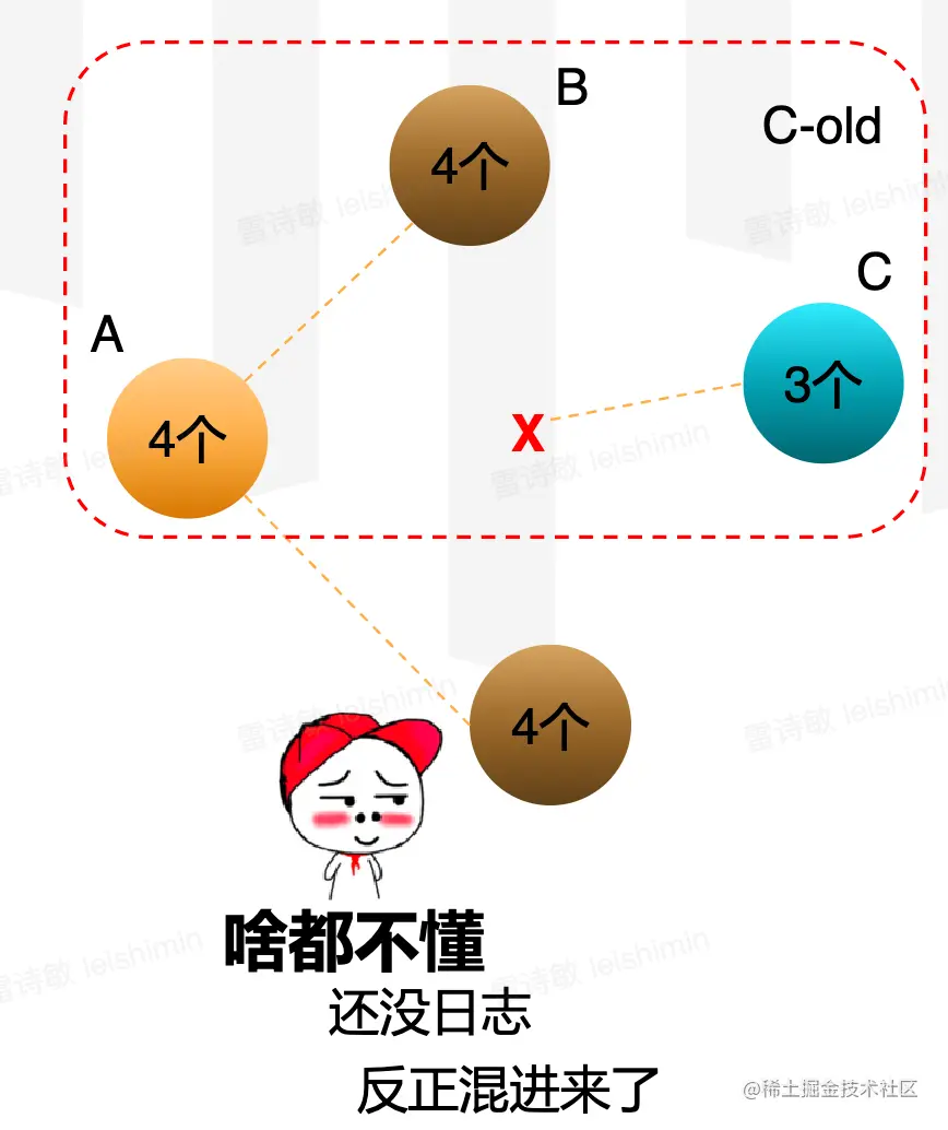- 如果贸然直接加入多个节点,势必会导致多个Leader节点的情况