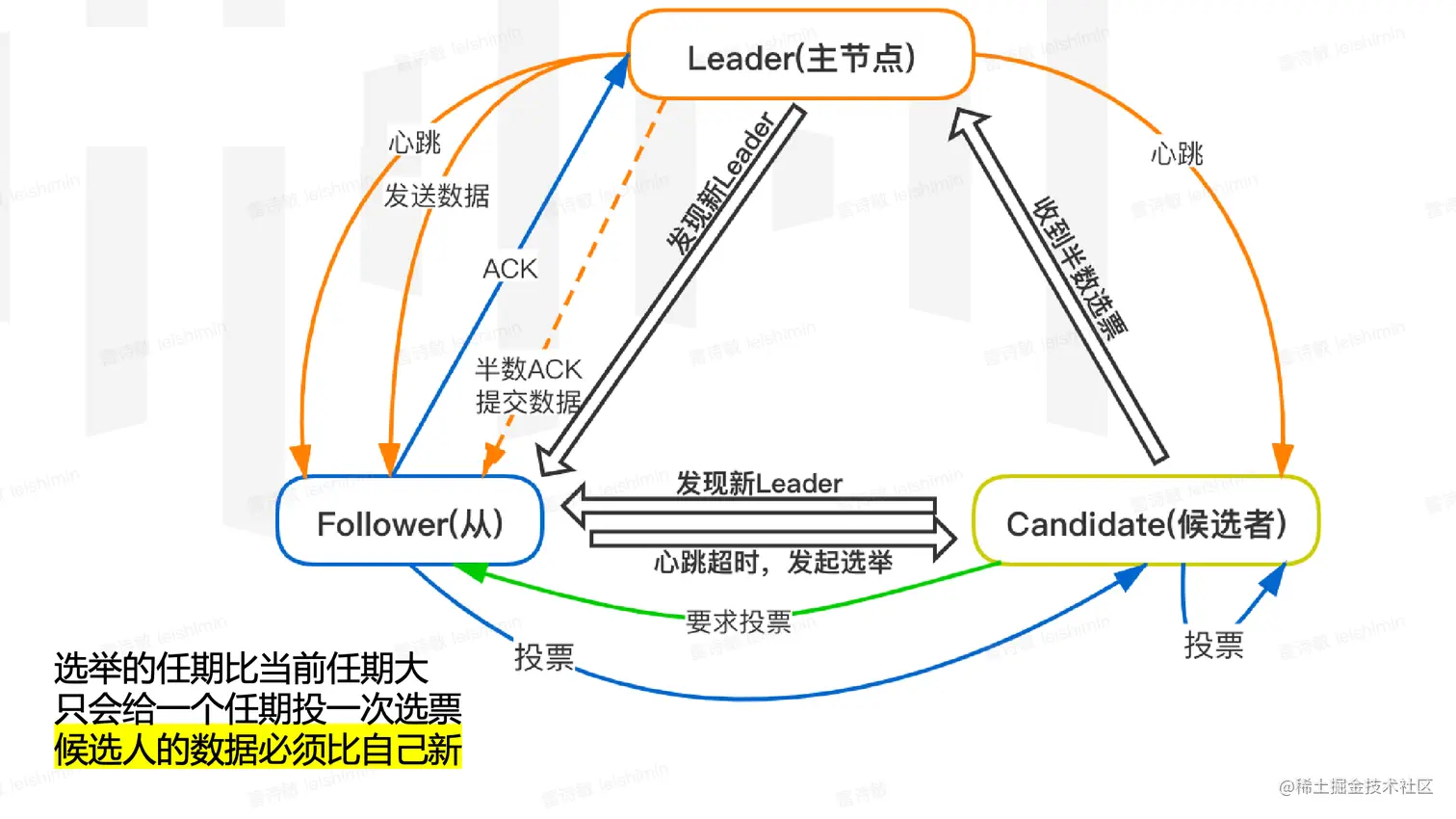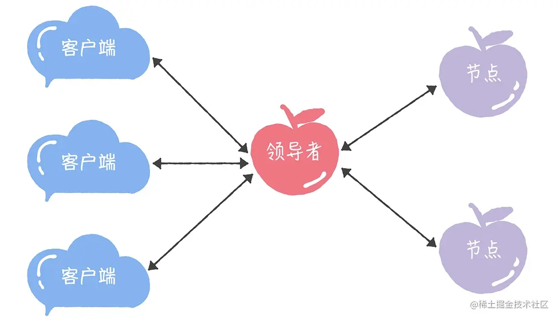 需要你注意的是,Raft 算法是强领导者模型,集群中只能有一个“霸道总裁”。
