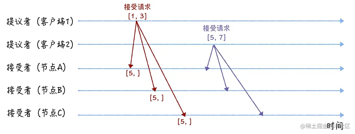一般而言,节点会先接收到自己发送给自己的选票(因为不需要跨节点通讯,传输更快),也就是说,B 会先收到来自 B 的选票,C 会先收到来自 C 的选票: