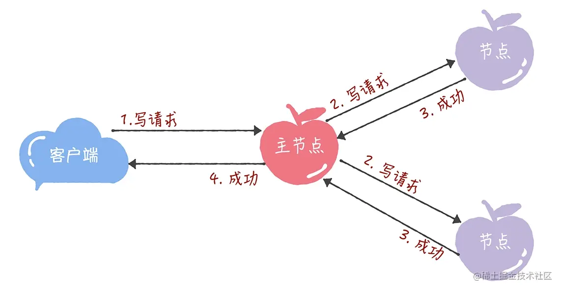 - 领导者(Leader): 作为主(Primary)节点,在同一时间集群只会有一个领导者。需要你注意的是,所有的写请求都必须在领导者节点上执行。