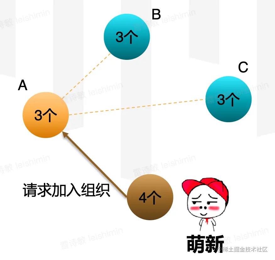 - 候选人(Candidate):发现Leader出现问题时的挺身而出者。