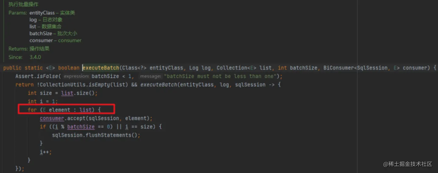 继续追踪了下,从这个代码来看,确实是 for 循环一条一条执行了 sqlSession.insert,下面的 consumer 执行的就是上面的 sqlSession.insert: