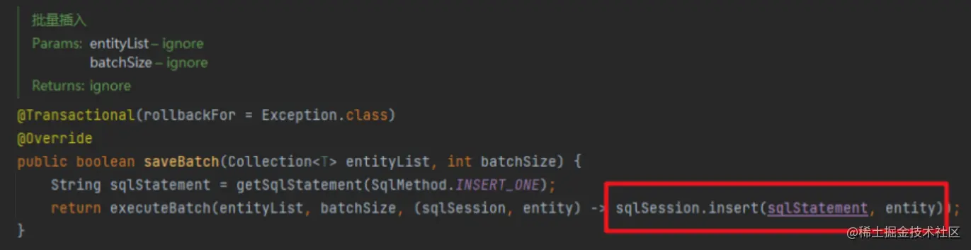 这个项目用的是 mybatis-plus,批量保存直接用的是 mybatis-plus 提供的 saveBatch。 我点进去看了下源码,感觉有点不太对劲: