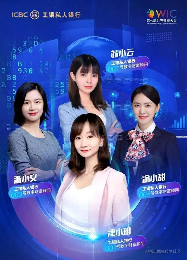 作为本届大会全球合作伙伴,中国工商银行在这一国际性舞台首次推出“津小玥”“浙小文”“渝小甜”“苏小云”四个工银数字财富顾问,而四位颜值与能力并存的数字员工均来源于出门问问AIGC数字人产品——“奇妙元”。